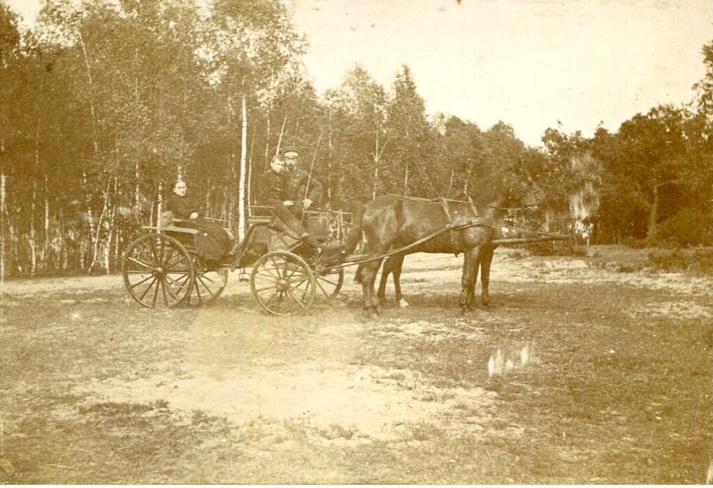 4. Dopiero po zjechaniu z głównej asfaltowej drogi na leśny sacalski trakt znaleźliśmy się znienacka w świecie dziadkowych opowieści. Oto leśna droga, dużo szersza niż dzisiaj, w kolasce wdowa po filologu, dziadek Andrzeja i żandarm z ochrony, ale las się nie zmienił…