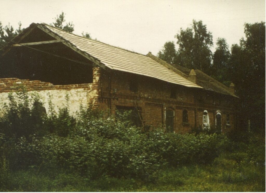 …i zaraz kamień, tak to była brama do folwarku, a za nią pierwsze budowle gospodarcze, z których już nawet nie zostały ostatki fundamentów. To chyba obory albo stajnie, gdzieś tutaj ruiny znikają pod murawą, nieco dalej była stróżówka, w której zwykle kwaterowali żandarmi z ochrony pradziadka (dziesięciu żołnierzy), bo należy pamiętać, że dookoła rozciągały się tereny powstańcze. Co było potem? Andrzej nie bardzo pamięta, gdyż opowieści dziadkowe się rozjeżdżają w jego wspomnieniach na te, które zasłyszał i te, które potem zapisał.