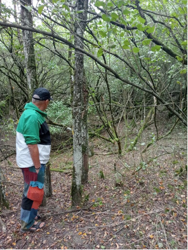 Po kilkudziesięciu metrach przedzierania się przez zarośla stanęliśmy nad leśnym wykrotem. To tutaj stał dworek Pawła Rybnikowa, jego ostatnie pristaniszcze na ziemi… Tu przepadło całe rodzinne archiwum, korespondencja z Lwem Tołstojem i parę innych rarytasów, wdeptanych w ziemię butami sołdatów sowieckich w 1945 roku. Tu…